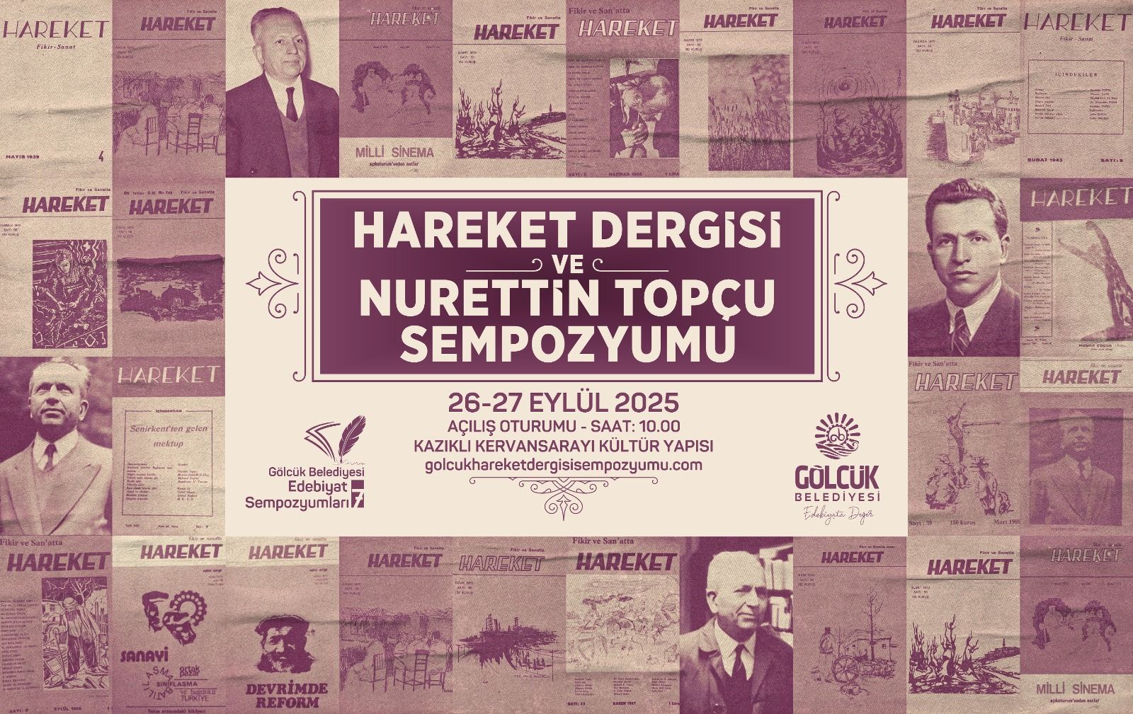 Düzenlediği sempozyumlar ile edebiyat dünyasına önemli katkılar sunan Gölcük Belediyesi, edebiyat ve felsefe dünyasının önemli isimlerini 7.kez bir araya getirecek. Bu kapsamda düzenlenecek “Hareket Dergisi Ve Nurettin Topçu Sempozyumu”, 26 Eylül Cuma günü Kazıklı Kervansarayı Kültür Yapısı’nda edebiyat tutkunlarına kapılarını açacak. Kültür ve Turizm eski Bakanı, AK Parti MKYK Üyesi Mahir Ünal’ın katılacağı sempozyumda Topçu’nun düşünce dünyası hakkında önemli bilgiler paylaşılacak.