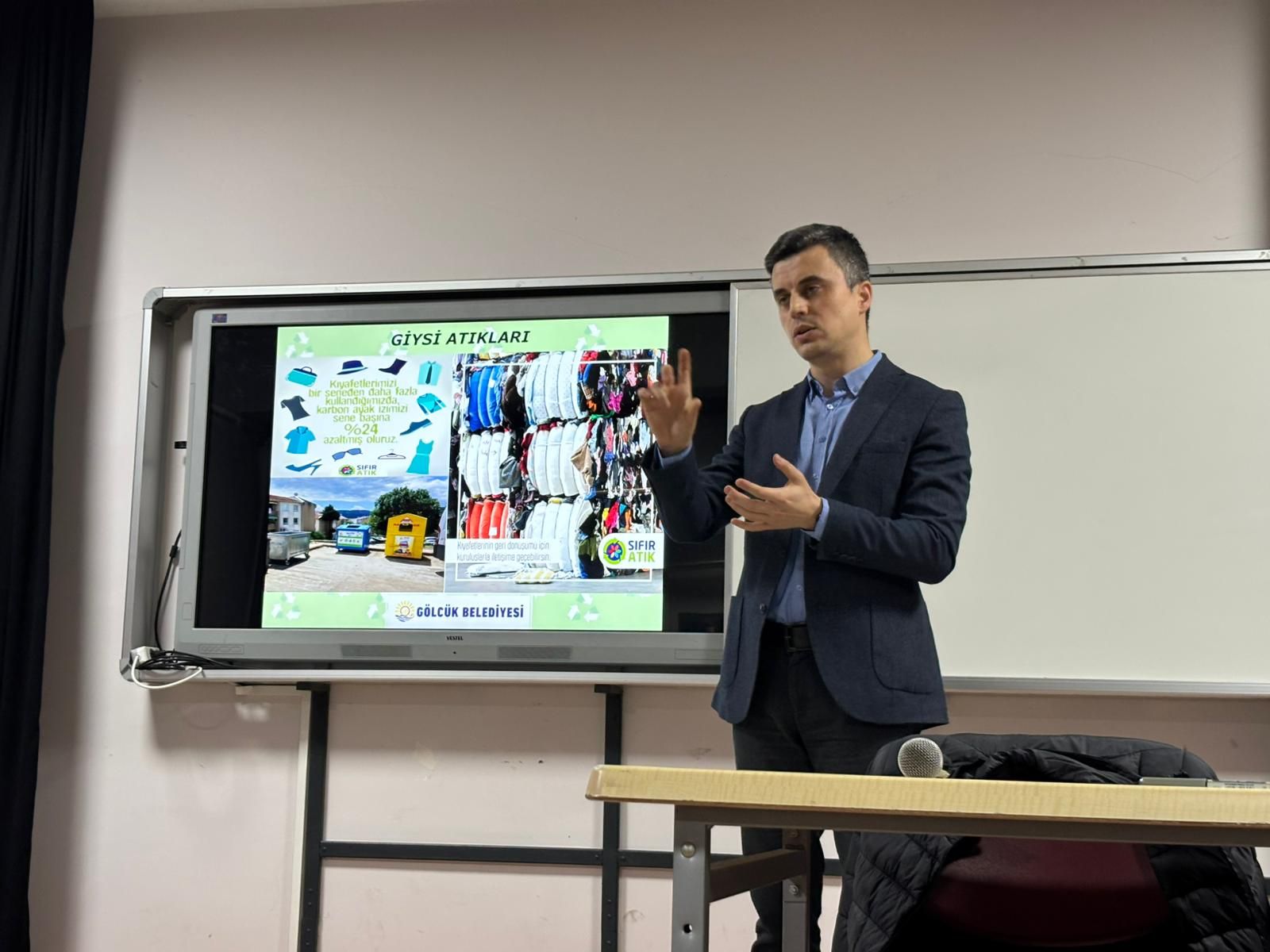 Gölcük Belediyesi, ilçedeki okullarda geri dönüşüm ve sıfır atık bilincini artırmaya yönelik eğitimlerine hız kesmeden devam ediyor. Eğitimler kapsamında Gölcük Belediyesi Çevre Koruma ve Kontrol Müdürlüğü ekipleri, Gölcük Ticaret Meslek Lisesi’nde öğrenciler ile bir araya geldi. Yaklaşık 150 öğrencinin katıldığı eğitimde; Çevre Koruma ve Kontrol Müdürü Serkan Aksöz tarafından öğrencilere, sıfır atık uygulamalarının günlük hayatta nasıl kolaylıkla uygulanabilecekleri örneklerle anlatıldı.