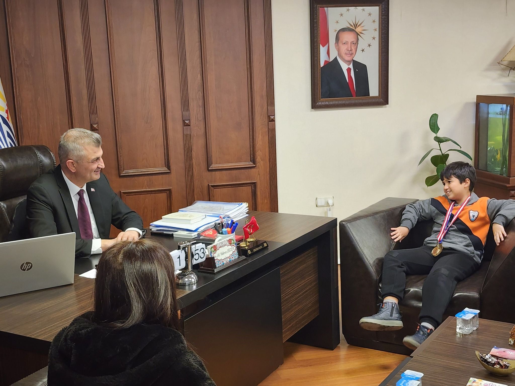 Güvenç’in kazandığı başarıdan övgü ile söz eden Başkan Sezer, “Güneydoğu Asya Matematik Olimpiyatları ve FERMAT Matematik Olimpiyatlarının Ulusal Turu'nda kazandığı 3 altın madalya ile Türkiye’nin ve ilçemiz Gölcük’ün gurur kaynağı olan Halıdere İlkokulu öğrencisi Sarp Arel Güvenç'i belediyemizde misafir etmekten büyük mutluluk duyduk. Bu büyük başarıda emeği geçen kıymetli ailesini ve öğretmenlerini gönülden tebrik ediyorum. Sarp Arel'in azim ve yeteneği ile daha nice başarıya imza atacağına yürekten inanıyor, başarılarının artarak devam etmesini diliyorum” dedi.