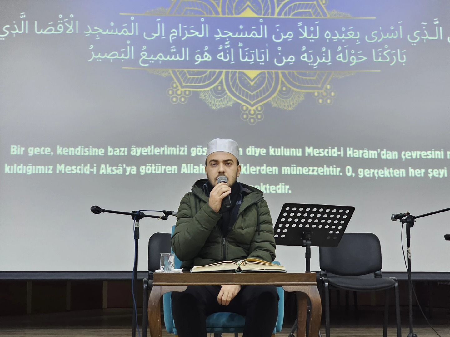 Program, Kur’an-ı Kerim Okuma Marmara Bölge Birincisi Celal Talha Çelik’in tilavetiyle başladı. Kudüs’ün tarihi derinliğini ve bölgede yaşananları bizzat o topraklardan gelen bir isimden dinleme fırsatı bulan Gölcüklüler, Kudüslü ünlü tarihçi Dr. Cemal Amr’ın aktardığı bilgilerle bilgilendi. Mescid-i Aksa Müezzini Adil Kadmani ise Kudüs’ün sesini Gölcük’e taşıdı. Programın son bölümlerinde sanatçı Enes Akçay, seslendirdiği eserlerle katılımcıların duygularına tercüman oldu.