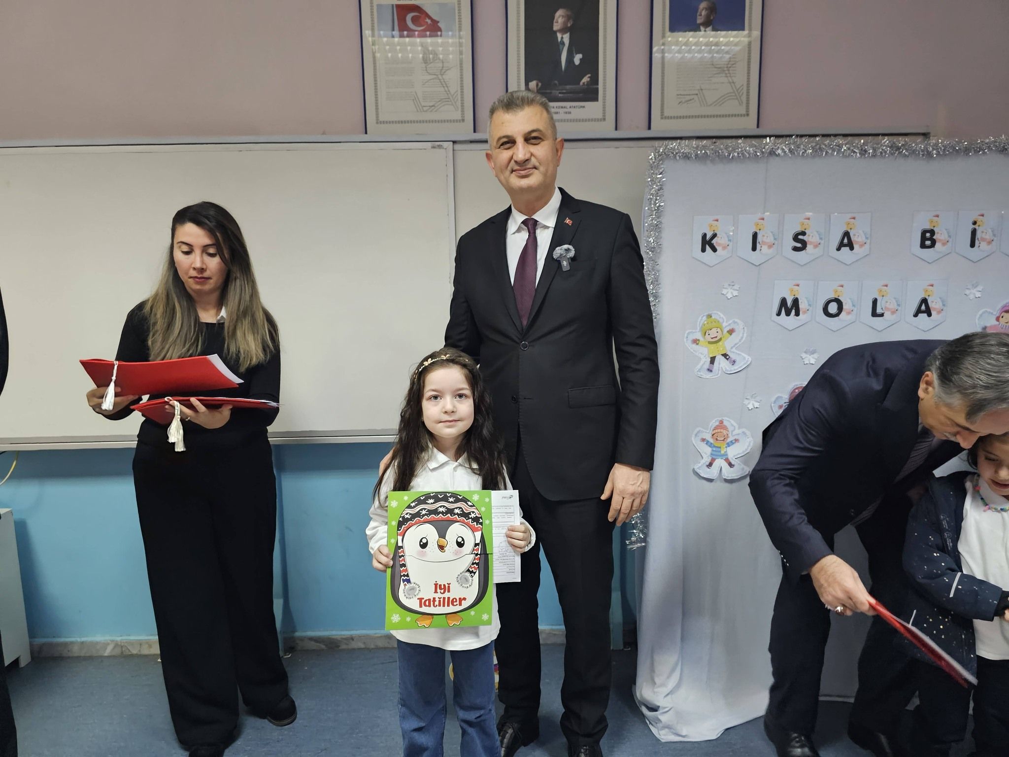 Törende Gölcük Belediye Başkanı Ali Yıldırım Sezer, karnelerini verdiği öğrencilere; tatil dönemini iyi değerlendirmeleri, bol bol kitap okumaları konusunda tavsiyelerde bulunarak iyi tatiller diledi. Başkan Sezer ayrıca minik öğrencileri Gölcük Belediyesi’nin 21, 22, 27 ve 31 Ocak tarihlerinde düzenleyeceği Ara Tatil Tiyatro Şenliği’ne davet etti.