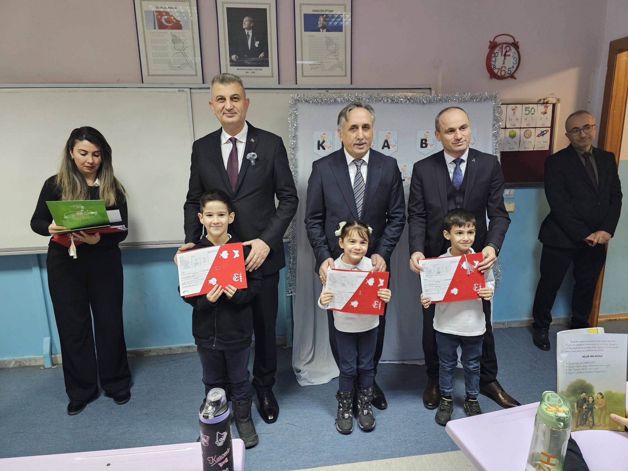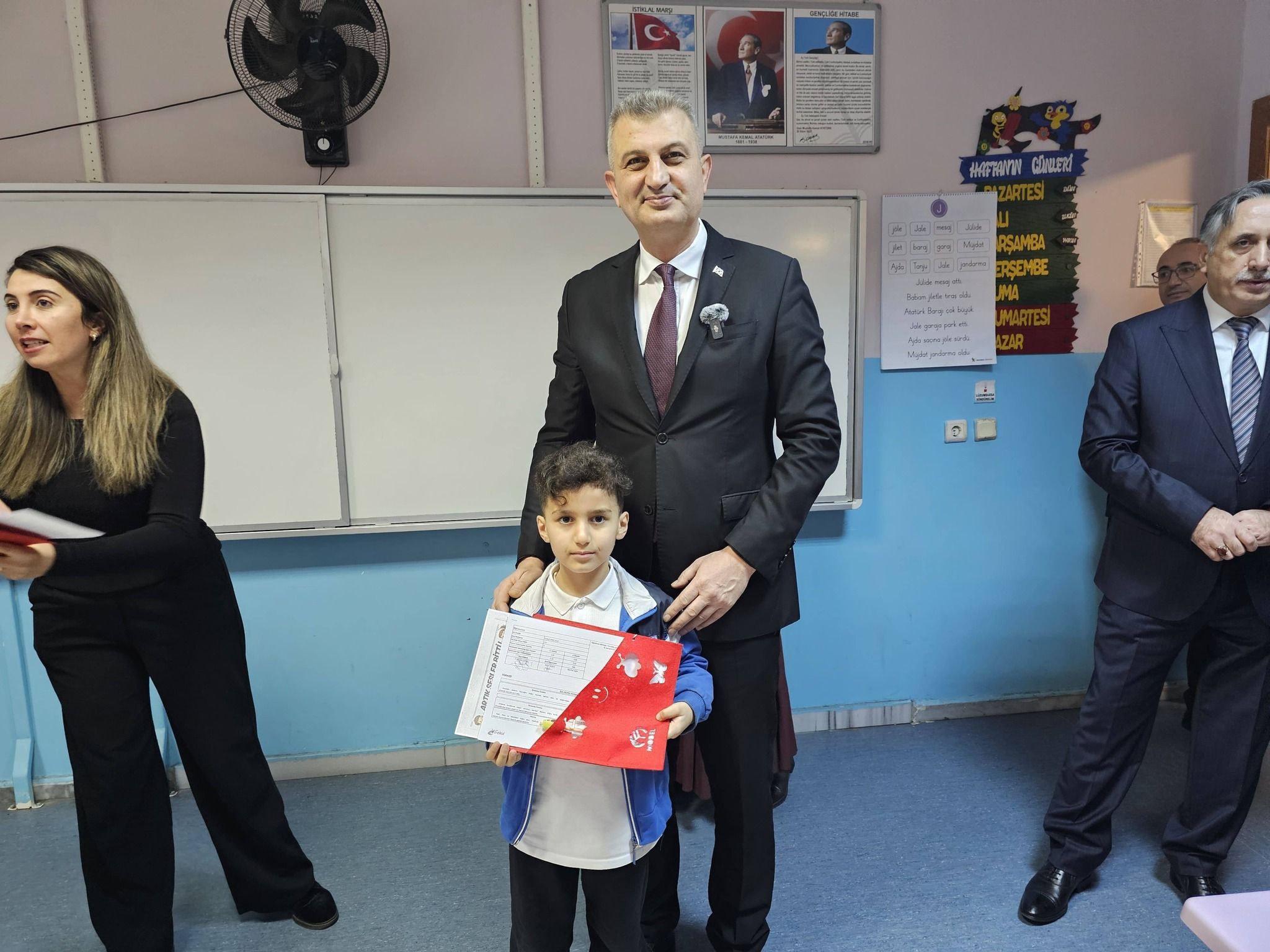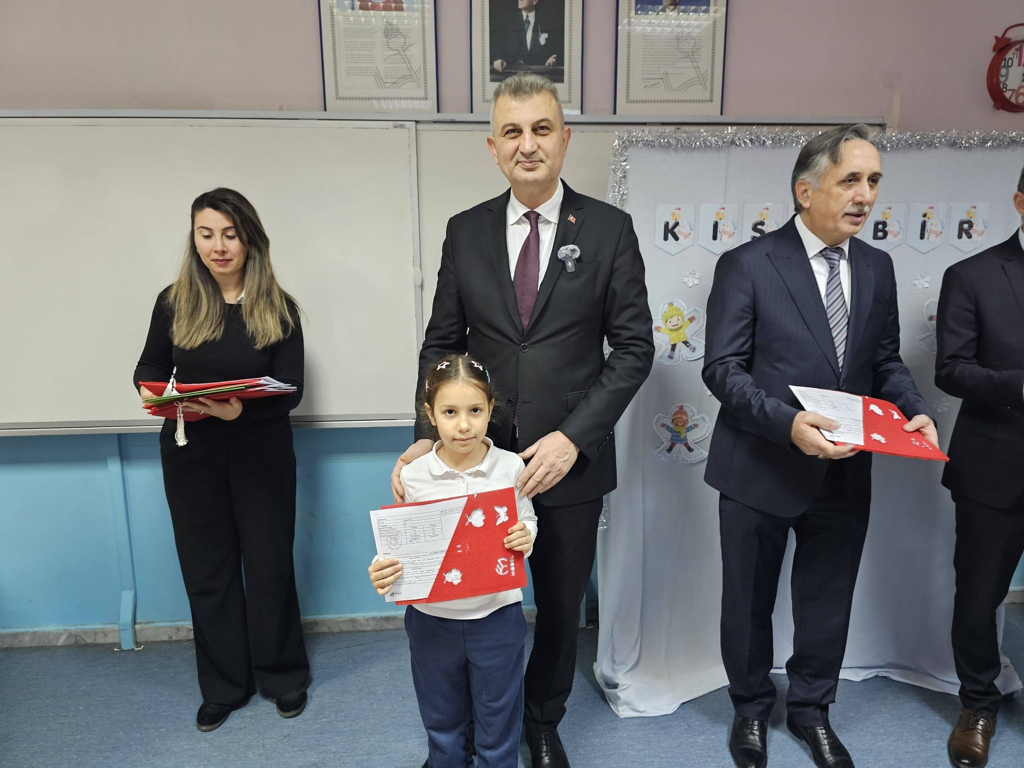 Gölcük’te 2025-2026 eğitim öğretim yılı, yarıyıl döneminde; ilk, orta, lise ve dengi okullarda eğitim gören binlerce öğrenci, karne heyecanı yaşadı. Gölcük Rotterdam İlkokulu’nda düzenlenen karne törenine; Gölcük Kaymakamı Müfit Gültekin, Gölcük Belediye Başkanı Ali Yıldırım Sezer, İlçe Milli Eğitim Müdürü Caferi Tayyar Mert, öğrenciler, öğretmenler ve veliler katıldı. Törende öğrenciler karnelerini; Kaymakam Gültekin, Başkan Sezer ve İlçe Milli Eğitim Müdürü Mert’in elinden aldılar.