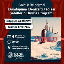 Gölcük Belediyesi tarafından düzenlenen "Dumlupınar Denizaltı Faciası Şehitlerini Anma Programı" kapsamında, vatan savunmasında şehit düşen kahraman denizcilerimiz özel bir etkinlikle yad edilecek. 4 Nisan 2026 Cumartesi akşamı saat 20.00’de Kazıklı Kervansarayı Kültür Yapısı’nda gerçekleştirilecek olan belgesel gösterimi ve tiyatro oyunuyla, tarihin derinliklerindeki o acı gece yeniden hafızalarda canlanacak.