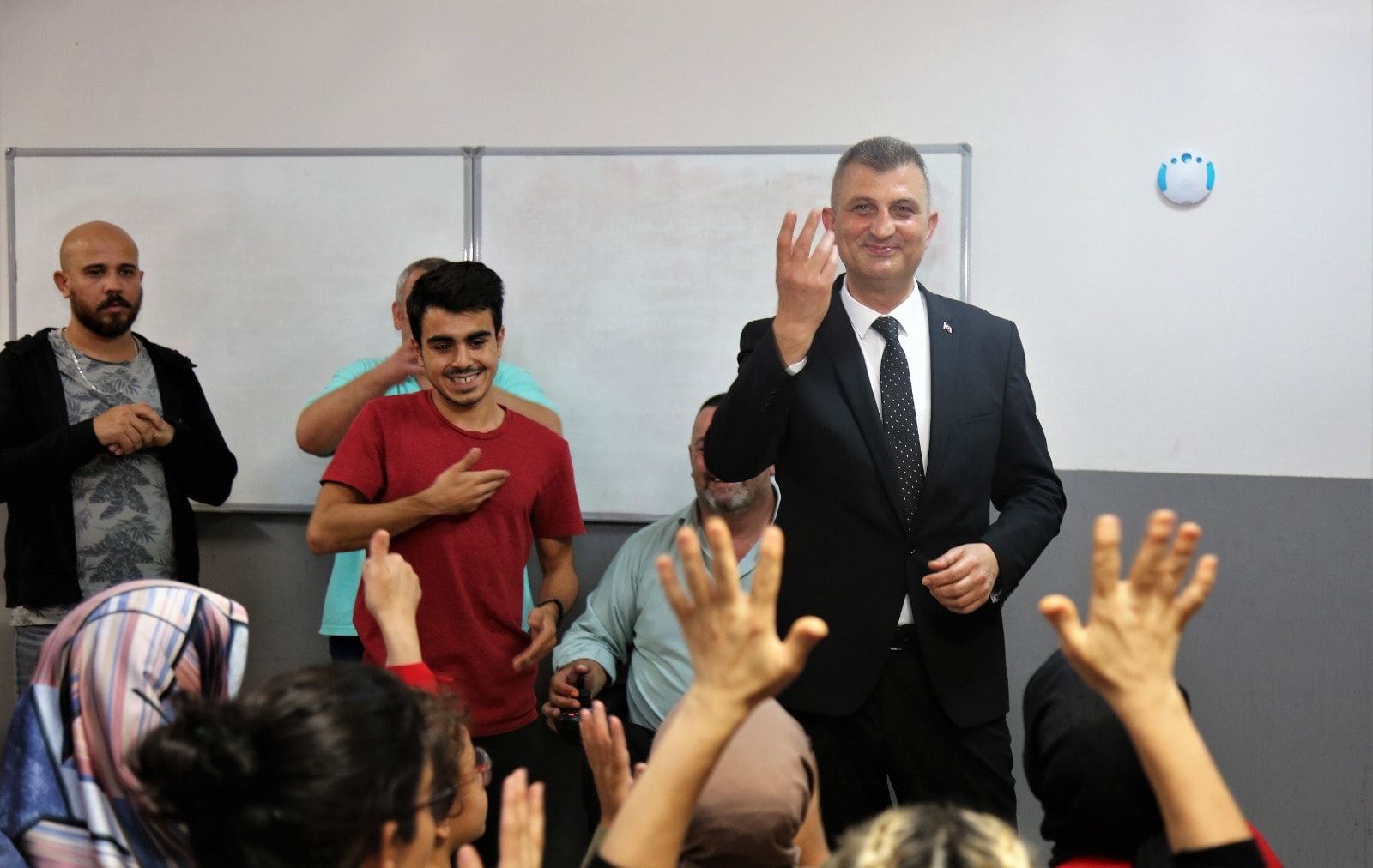 Kapı zillerini teslim alan işitme engelliler, kendilerine he zaman destek veren Gölcük Belediye Başkanı Ali Yıldırım Sezer’e teşekkür ettiler.