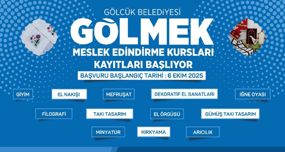 Gölcük Belediyesi; meslek edinmek, yeni beceriler kazanmak veya hobilerini geliştirmek isteyen vatandaşlar için bu yıl da GÖLMEK bünyesinde çeşitli branşlarda kurs imkanı sunacak. Vatandaşların mesleki gelişimlerine katkı sağlamayı hedefleyen GÖLMEK, bu dönem de ilgi görmesi beklenen 12 branşta kapılarını açacak. GÖLMEK kurslarına katılmak isteyenler için ise kayıt işlemleri 6 Ekim 2025 Pazartesi günü başlayacak.