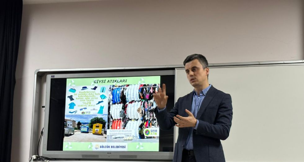 Gölcük Belediyesi, ilçedeki okullarda geri dönüşüm ve sıfır atık bilincini artırmaya yönelik eğitimlerine hız kesmeden devam ediyor. Eğitimler kapsamında Gölcük Belediyesi Çevre Koruma ve Kontrol Müdürlüğü ekipleri, Gölcük Ticaret Meslek Lisesi’nde öğrenciler ile bir araya geldi. Yaklaşık 150 öğrencinin katıldığı eğitimde; Çevre Koruma ve Kontrol Müdürü Serkan Aksöz tarafından öğrencilere, sıfır atık uygulamalarının günlük hayatta nasıl kolaylıkla uygulanabilecekleri örneklerle anlatıldı.