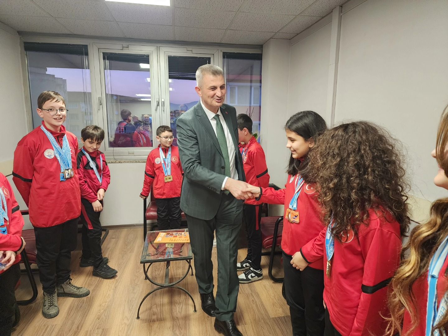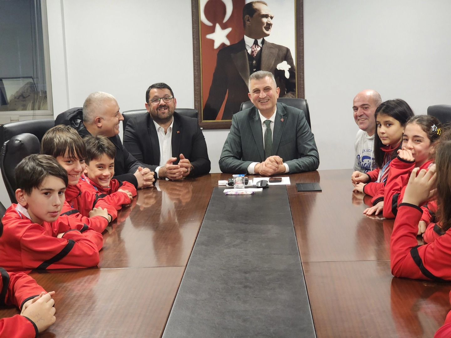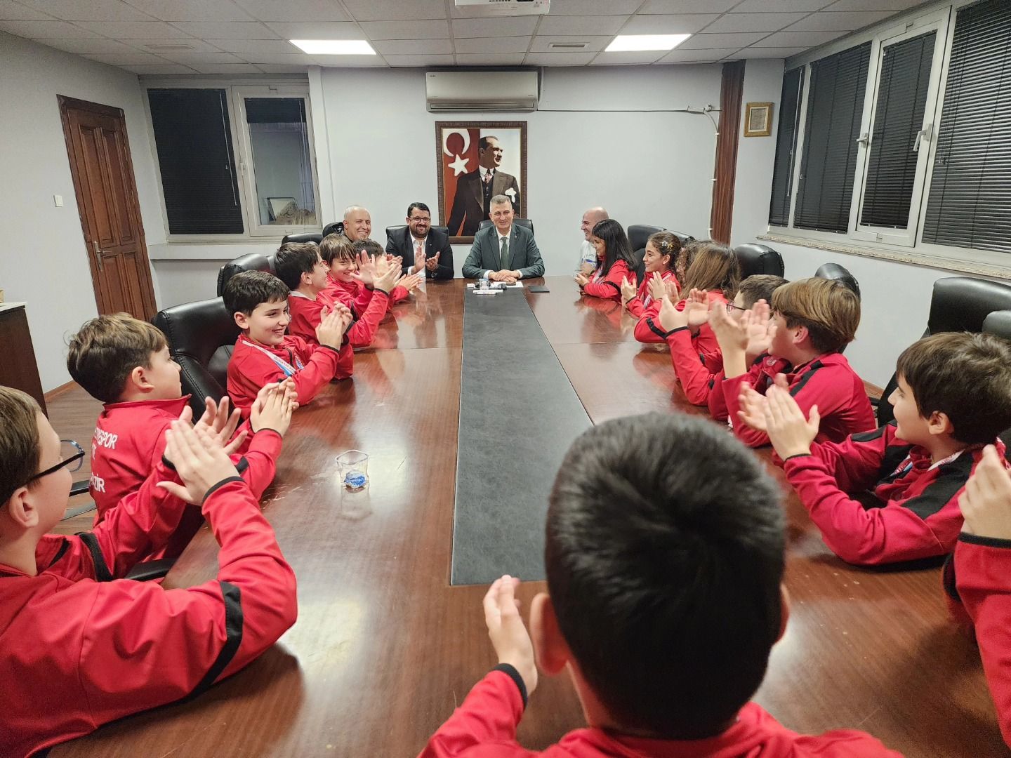 Gölcük Belediyespor Yüzme Kulübü sporcuları, Türkiye Yüzme Federasyonu 10-11-12 Yaş Ulusal Gelişim Projesi Ligi vize yarışlarında barajları aşarak Mersin’deki Bölge Müsabakaları ve Trabzon’daki Türkiye Finalleri’nde başarı ile mücadele ettiler. Elde ettikleri başarılar ile ilçenin gururu olan yüzücüler, Gölcük Belediye Başkanı Ali Yıldırım Sezer’i makamında ziyaret ettiler. Ziyarette kazandıkları başarıların mutluluğunu Başkan Sezer ile paylaşan yüzücüler, destekleri için tüm belediye ekibine teşekkür ettiler.