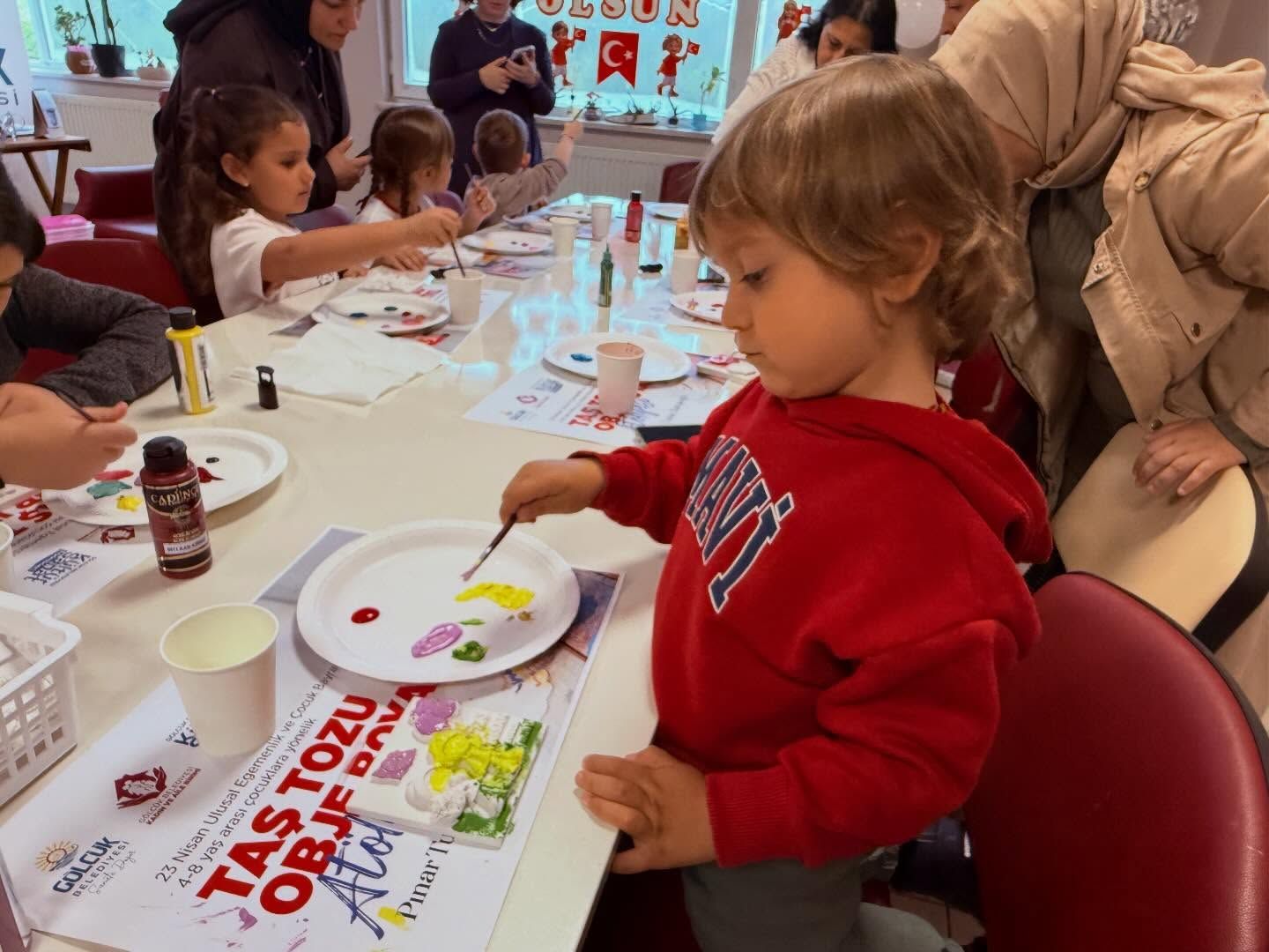 Gölcük Belediyesi; 23 Nisan Ulusal Egemenlik ve Çocuk Bayramı etkinlikleri kapsamında Belediyesi Mehmet Akif Ersoy Kültür Merkezi’nde de çocuklara özel program düzenlendi. “Çocuklar İçin Sanat Dolu Bir Gün” sloganı ile düzenlenen taş tozu obje boyama atölyesine katılan 4-8 yaş arası çocuklar, eğitmen Pınar Turaç Hatipoğlu eşliğinde birbirinden güzel eserler ortaya çıkardı. Etkinliğe katılan Gölcük Belediye Başkan Yardımcısı İbrahim Uzuner, çocukların el becerilerini geliştirerek eğlendiği anlara ortak oldu.