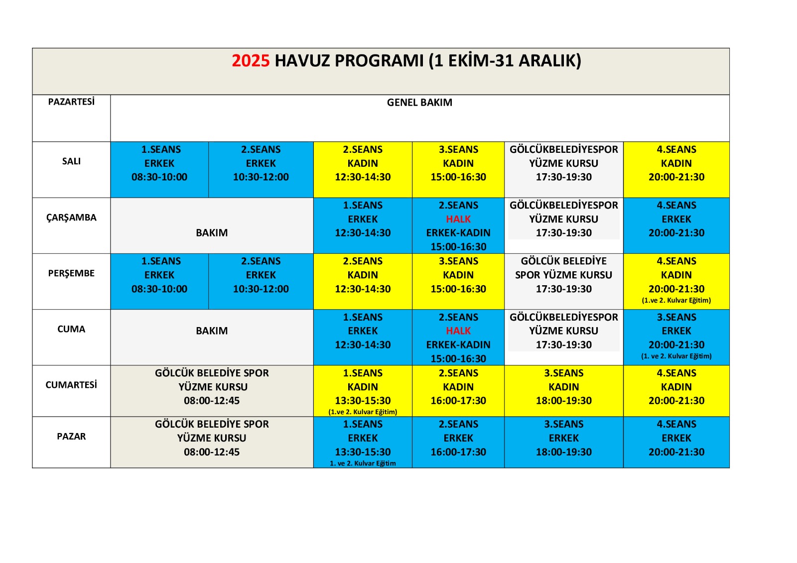 *Havuz bölümüne TELEFON ve FOTOĞRAF MAKİNASI ile girmek yasaktır.